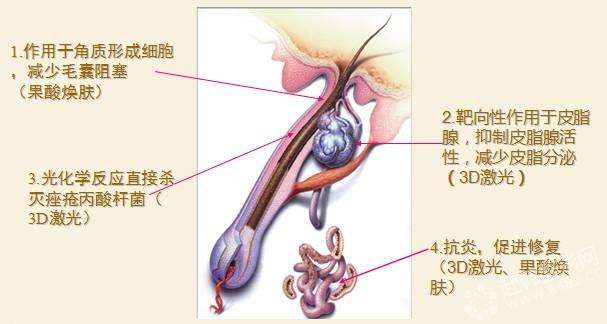 染料激光、强脉冲光常用于祛红、消炎、抑制丙酸痤疮杆菌繁殖。